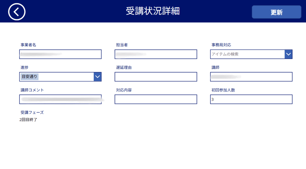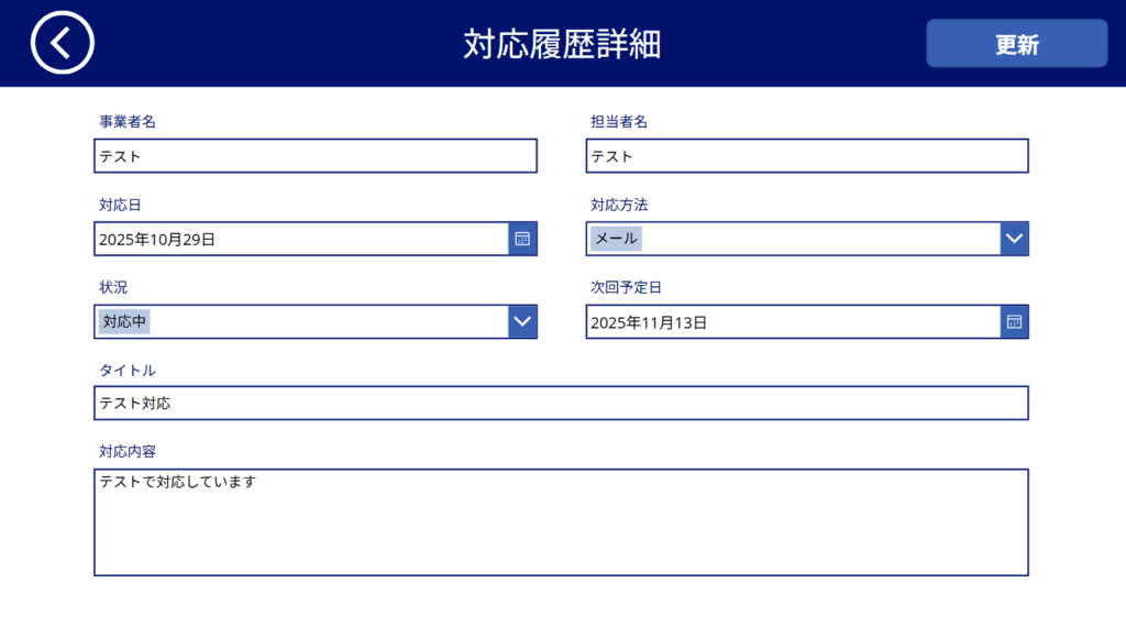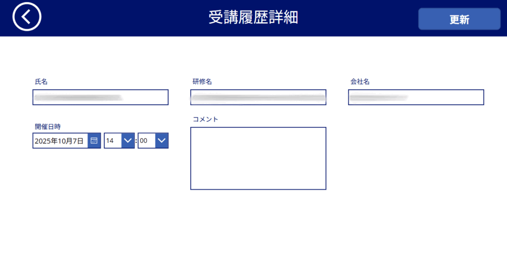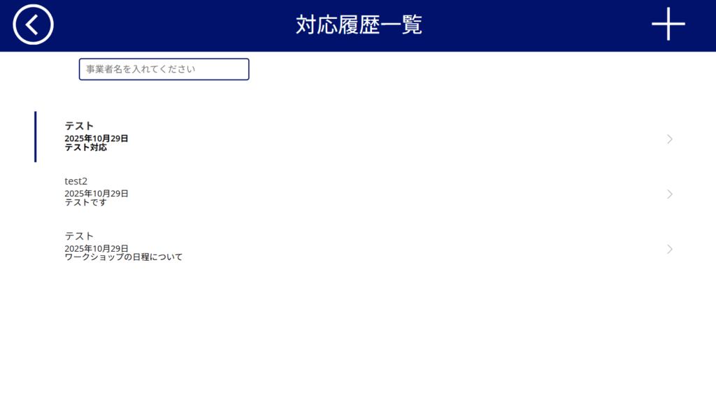 顧客カルテアプリ 導入の背景 顧客情報をエクセルや紙で個別管理しており、履歴が散在していた。 対応漏れや情報の引き継ぎ不足が発生していた。 システム概要 顧客情報・対応履歴・受講履歴を一つのカルテとして管理。 担当者は過去の状況をすぐ把握でき、質の高いフォローが可能。 一覧表示で、必要な情報を簡単に呼び出せる。 システムUI 開発期間 3週間 使用したプロダクト Power Apps SharePointリスト