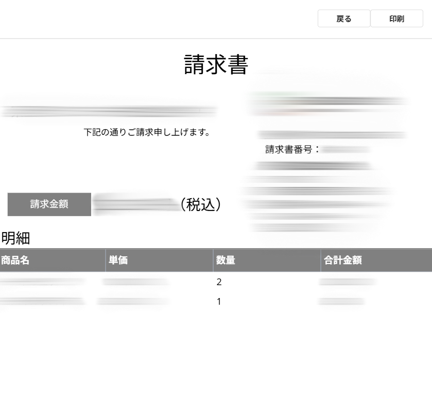 • 顧客名・明細・金額を入力すると、請求書が自動作成される。